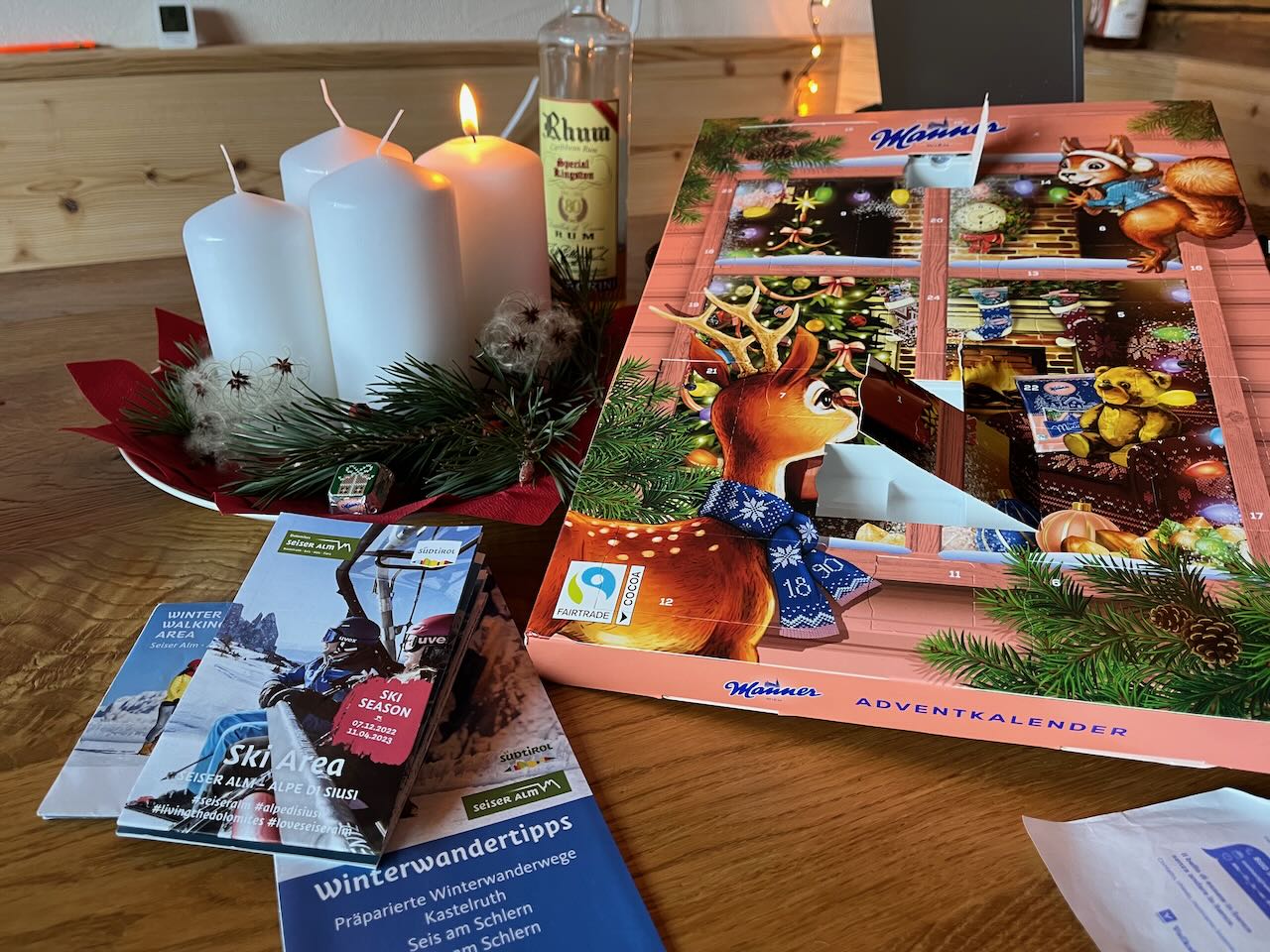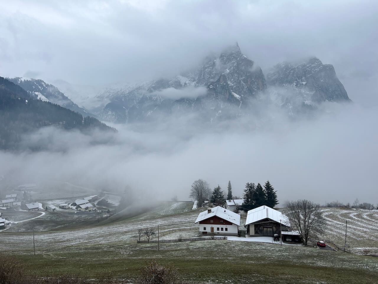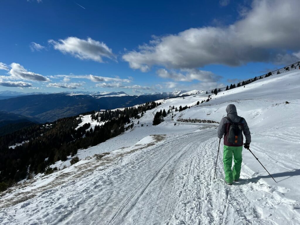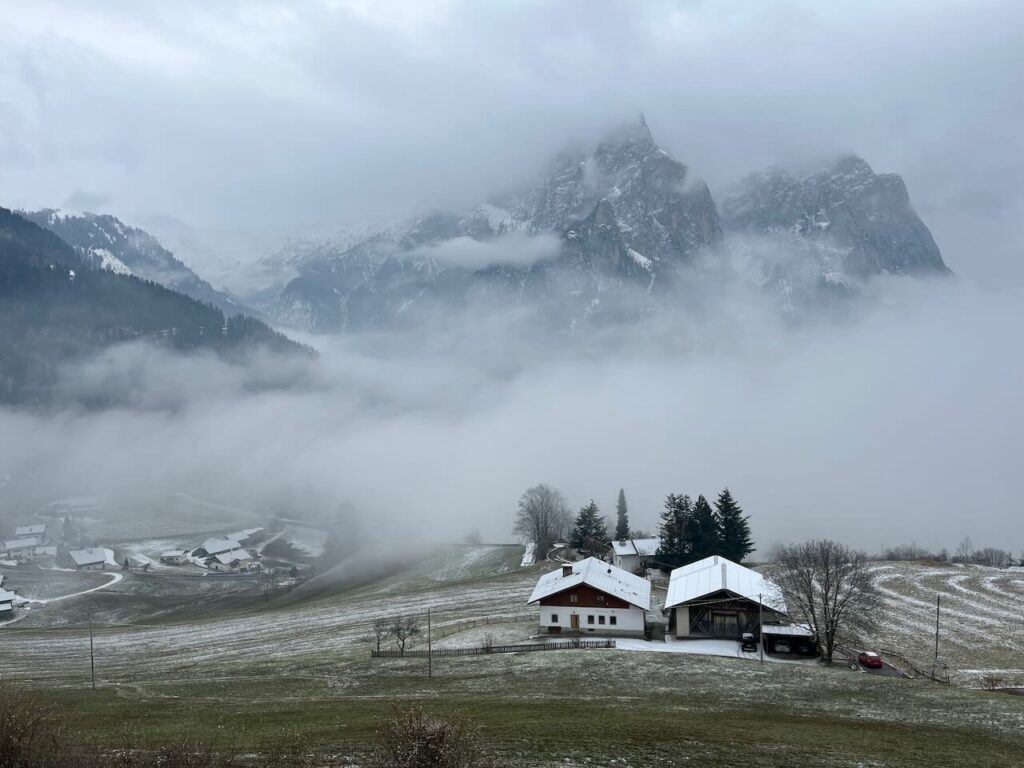 Um das Ganze auch noch abzurunden, mussten wir natürlich den Anfang der Skisaison mitnehmen – und zwar auf der Plose in Brixen. Dort hatten sie schon am 2.12. geöffnet – wir dachten aber, dass an dem Wochenende der Ansturm eventuell zu groß sein würde. Also planten wir stattdessen den 7.12. – Donnerstag – ein. Den Italienern stand ein langes Wochenende bevor (Mariä Empfängnis), und ab Freitag sollte überall die Hölle los sein. Zeit für uns, dann auf unserer Trieferhofer Alm bei den Eseln zu bleiben, die Laufenten zu beobachten und nochmal Runden hoch zum Marinzen-Lift zu wandern, statt uns diesen Trubel zu geben. Donnerstag sollte der einzige sonnige Tag werden – die angesagten -9 Grad ignorierten wir einfach mal.