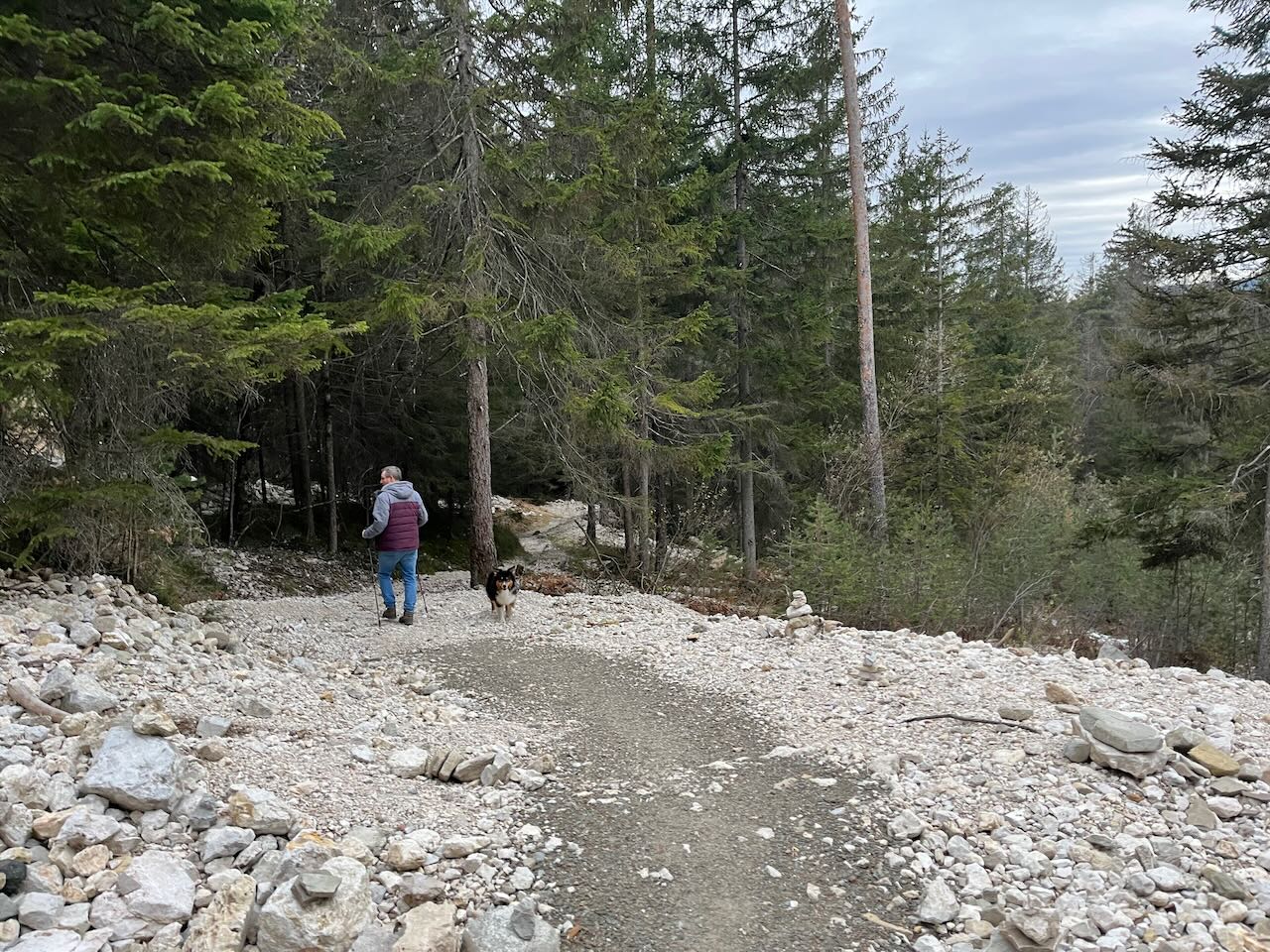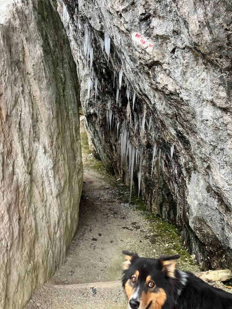 Gina und ich wanderten erstmal wieder den Wanderweg in Richtung Rossalm – aber da diese an dem Tag noch geschlossen war und der Weg dorthin doch recht weit war letztes Mal, drehten wir nach einiger Zeit wieder um, fuhren mit der Gondel nach unten und besorgten mir schonmal die Snowboard-Ausrüstung.