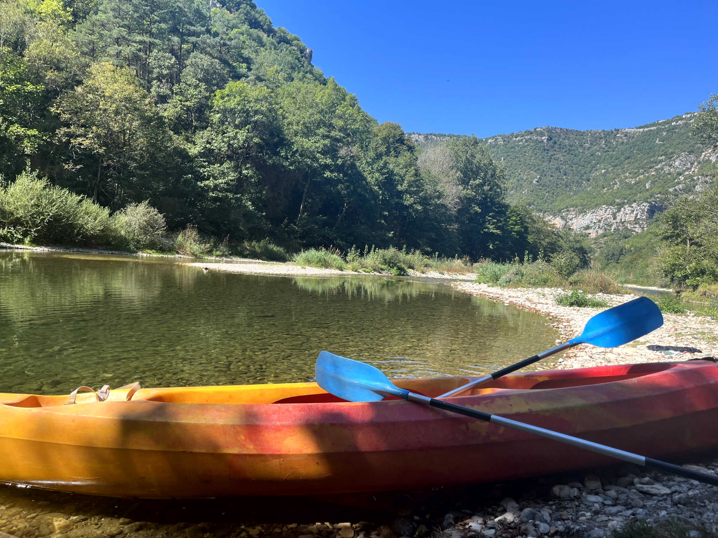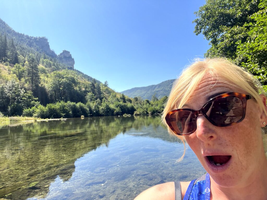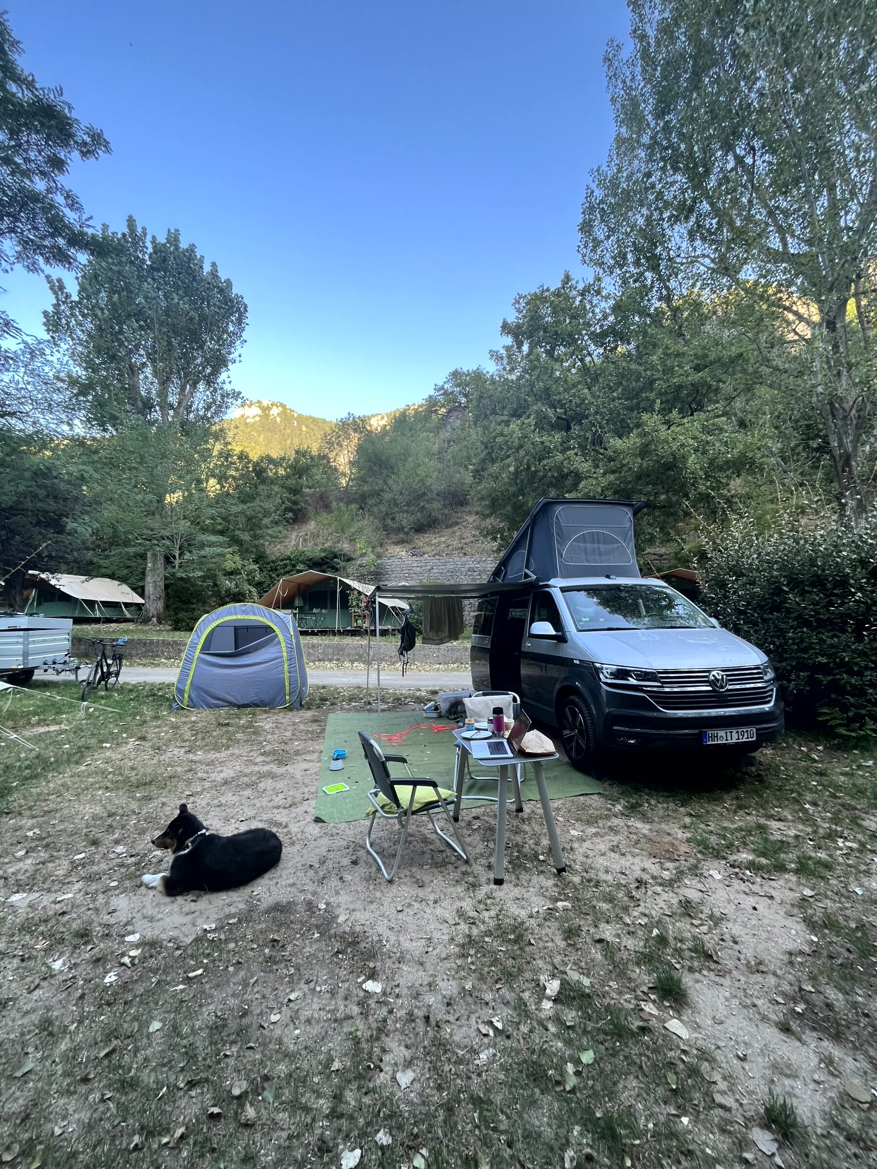 Seit Donnerstag – also seit 3 Tagen – sind wir nun am Fluss „Tarn“.. lustig ist, dass wir uns gar nicht mit der Gegend auseinandergesetzt haben. Den Campingplatz hatten wir in einem VW Bulli-Video gesehen, der Typ stand halt zufällig auf diesem Campingplatz – Huttopia Gorge du Tarn – und erzählte was von seinen Campingstühlen und dass man noch 2 weitere in der Heckklappe des Bullis unterbringen kann, wenn man die Richtigen kauft.