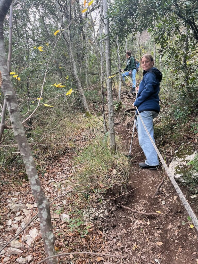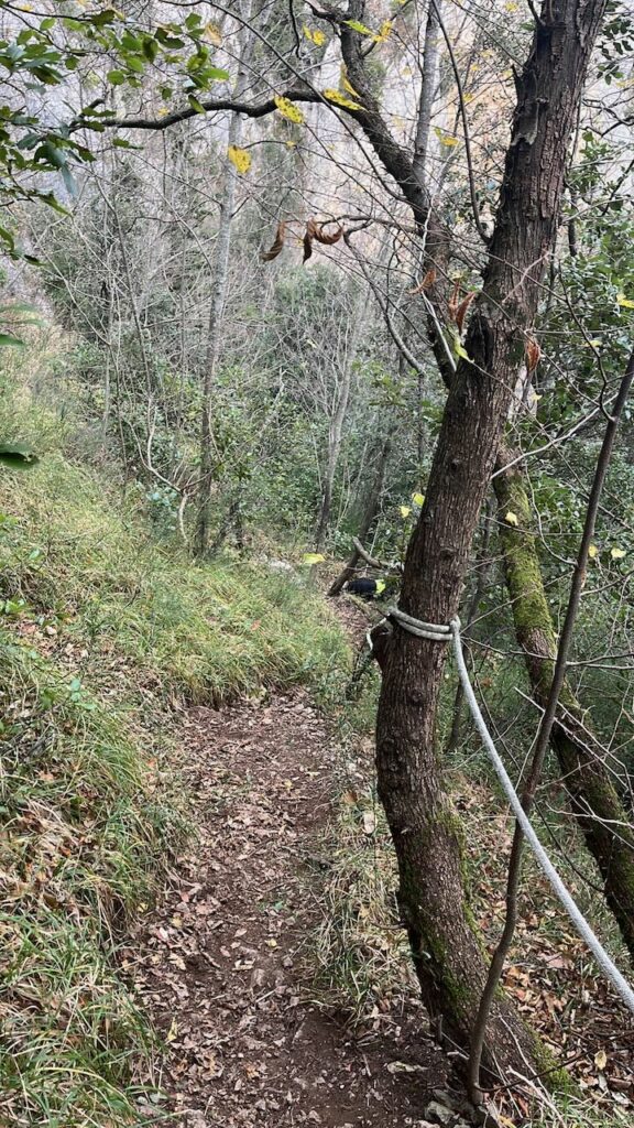 Die Wanderung führte uns diesmal einen Schlenker weiter und in eine kleine Schlucht, an der die alten Herren dann doch lieber Stopp machten und ein Pläuschchen halten wollten, während Nina, Tommi, Gina und ich den schmalen Pfad (rechts gings recht steil runter, nix für alte Herren mit Höhenangst 😉 ) weiter kletterten und unten in der Schlucht dann eine Menge Leute trafen, die eine Klippe hinaufkletterten. Wow. Und alle ohne Helm. Idioten. War faszinierend mit anzusehen, aber ich war ganz froh, dass ich nur zugucken musste 😉