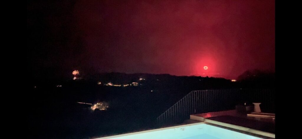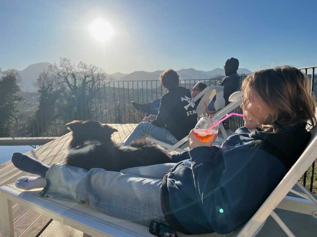 Wir sind es – herrlich entspannt, mit Nina, Tommi und Dahibi (Hübi) in der Casa Amici, mit lecker selbstgemachter Pizza, Sonic auf der Xbox spielen und dem Feuerwerk auf dem Berg gegenüber zuschauen, am Pool, mit einem Sektchen in der Hand. Herrlich dekadent.