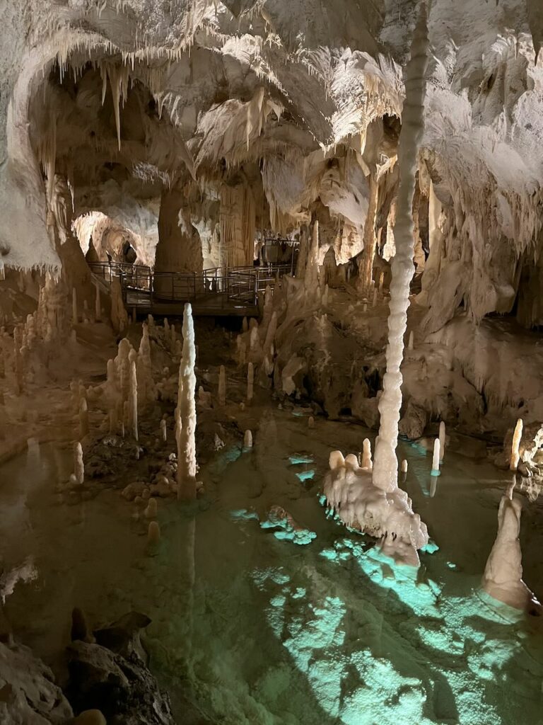 Wir haben die Frasassi-Höhlen besucht – wahnsinn, wer hier jemals herkommt, muss das unbedingt machen! Die Haupt-Höhle, die Grotte Abisso Ancona, zählt zu den größten weltweit, hat eine Höhe von 200 Metern, eine Länge von 180 und eine Breite von 120 Metern. Man sagt, da passt der Kölner Dom locker rein. Bei der Führung für Normalsterbliche läuft man auf einem 1,5km langen Weg durch die Höhlen, insgesamt erstreckt sich das noch nicht vollständig erkundete Höhlengebiet aber wohl auf über 30 Kilometer.