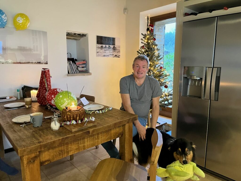 Dafür hatten wir dann heute wieder so einen richtig fetten Tag. Die Sonne knallte aus allen Knopflöchern und es war windstill. Zwar hatten wir wohl nur so 6-7 Grad, aber auf der Süd-Ost-Seite des Hauses, am großen Tisch vor der Küche, konnten wir wieder im Pullover sitzen, gemütlich und ausgiebig frühstücken, dazu ein kleines Sektchen, was soll der Geiz, und haben Quatsch geredet und Tränen gelacht. Eine Runde Crocket, bei der Sophie („Ich hab das das letzte Mal mit 5 Jahren gespielt“) uns volles Rohr abgezogen hat, eine Gassirunde den Hang runter, danach am Pool in der Sonne auf den Liegen chillen, dem Poolboy (Olaf) beim Pool säubern zusehen, mit kalter Coke und Salzkram bedient werden – ebenfalls vom Poolboy .. och, das hätte eigentlich so weitergehen können…