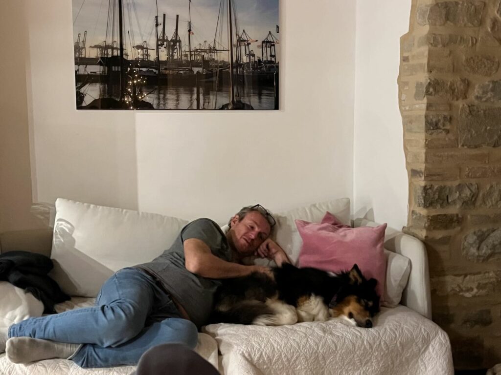 Bis zu Tommis Ankunft haben Nina, Olaf und ich in der Altstadt nach etwas Essbarem gesucht und mit Faszination und totaler Verblüffung festgestellt, dass die Innenstadt VOLL war. Überall waren die Italiener, natürlich auch mit ihren Wauwis, die lustigerweise alle hier Jäckchen oder Pullover tragen müssen (bei 10 Grad und trockenem Wetter). Zu essen gab es dann nur Pinsa Romana auf die Hand – dafür war der Betreiber des ToGo-Restaurants ein Italiener, der lange Zeit in Deutschland gewohnt und gearbeitet hatte. Immer wieder witzige Zufälle.