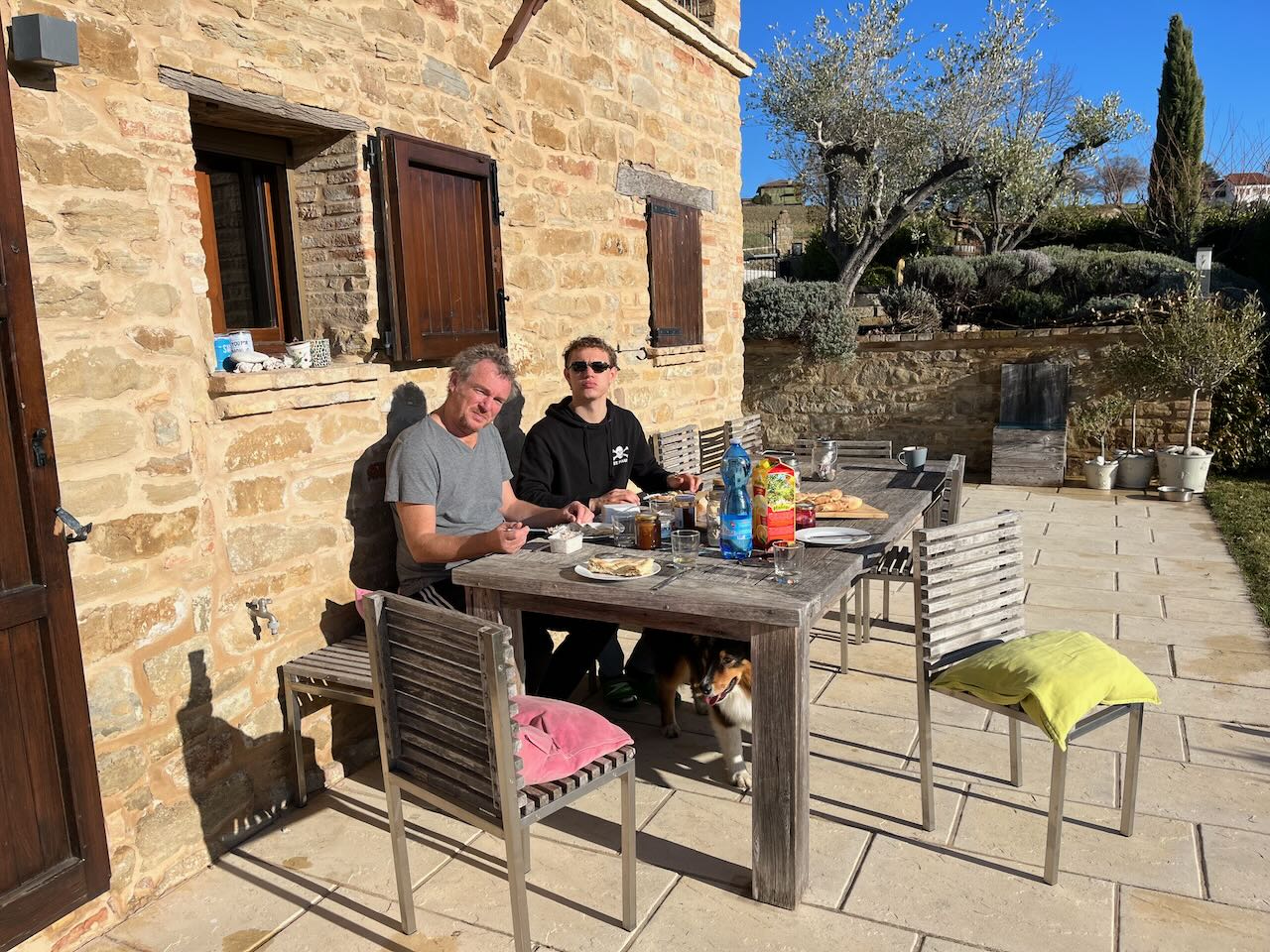 An Olafs Geburtstag haben wir gleich mit Sekt und Kuchen angefangen, sind bei Nebel und Saukälte durch Apiro gelaufen, haben uns in einem Café in Apiro in die 70er Jahre zurückversetzen lassen und bei Neonlicht und in Plastikstühlen einen (natürlich super leckeren) Cappuccino getrunken.. waren Abends dann hier in Cupramontana im Ristorante Gina – ebenfalls Neonlicht und Plastikstühle – aber es gab sehr leckere Pizza und gutes Ragù (in Deutschland Bolognese) – dazu irgendwie nach Schlamm schmeckenden Rotwein. Gut, nächstes Mal dann wohl lieber Bier bestellen 😂