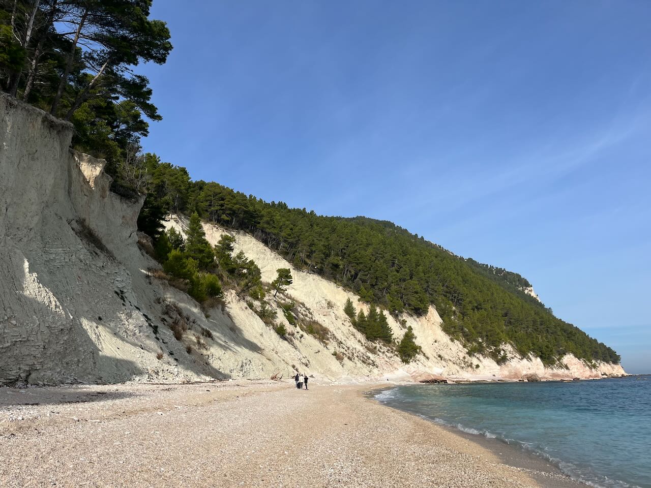 Sophie und ich – Olaf musste seinen Bronchitis-Rückfall kurieren – machten noch einen Ausflug nach Portonovo, wieder wunderschöne Steilküste (die gleiche sozusagen wie in Sirolo, nur diesmal nördlich des Berges). Wir genossen die Sonne, bis sie hinterm Berg verschwand – was an der Adria im Winter leider ziemlich schnell ist.