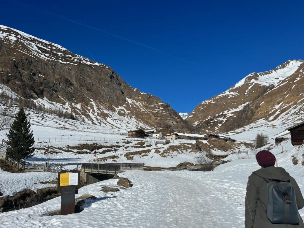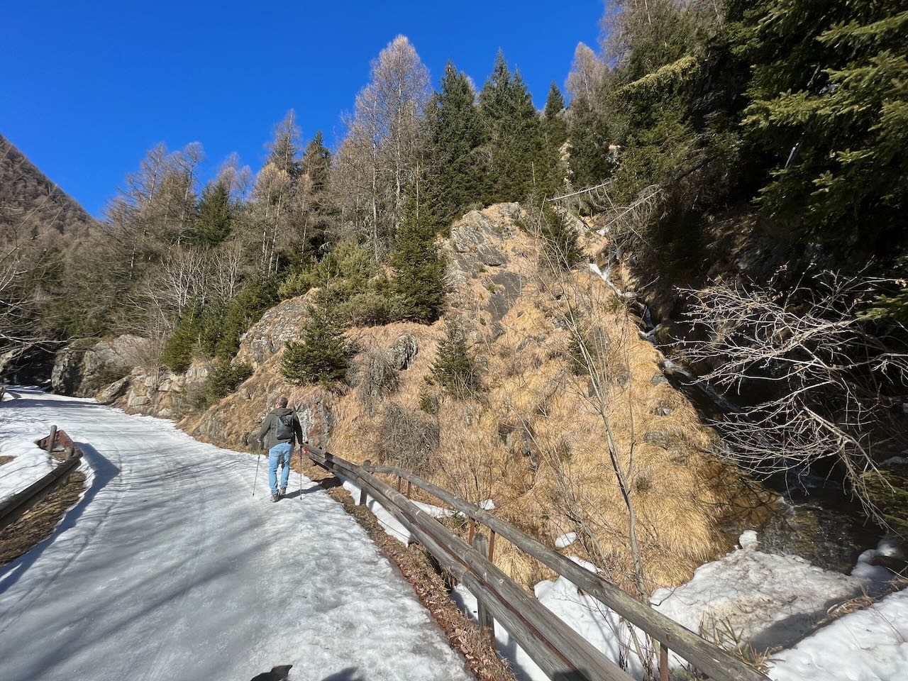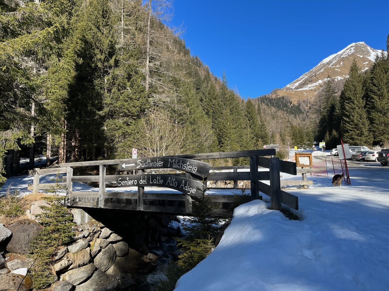 Unten angekommen haben wir festgestellt, dass die „Straße“ hoch zur Fane Alm (die wir überlegt haben, hochzufahren, um von dort aus noch höher aufzusteigen) im Winter wohl ein Skiweg oder eine Rodelpiste ist… gut, also dann doch von unten hochwandern, wie ursprünglich geplant.