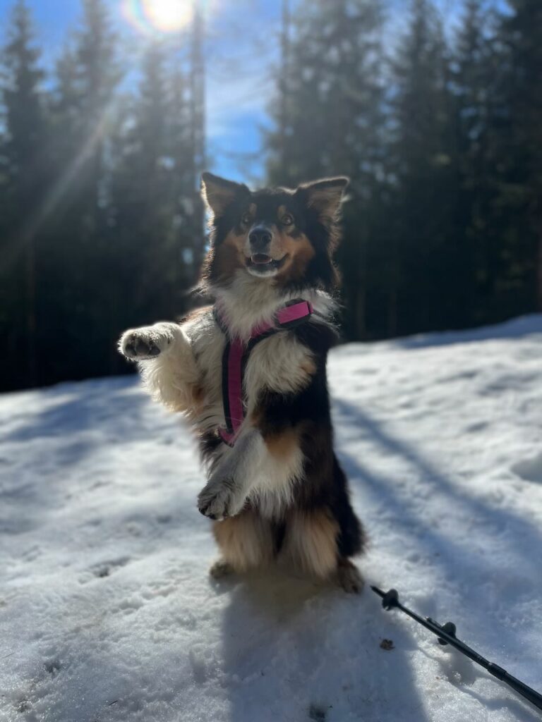 Neben dieser traumhaften Wanderung hat Olaf Tennistraining genommen, Gina und ich die Hundeschule besucht, Olaf und ich sind mit Gina über den Agility-Platz geflitzt und wir sind natürlich auch Ski gefahren oder im Schnee gewandert.