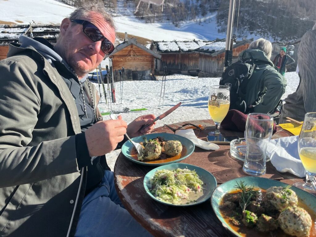 Olaf und Kai waren dann nochmal auf der Plose Skifahren – nach 30 Jahren ging das bei Kai ziemlich schnell wieder wie damals. Ist halt wie Radfahren, verlernt man nich. Bei fettem Sonnenschein und frischem Schnee auf der Piste war das natürlich ein perfekter Tag für die Beiden. Und Gina und ich hatten mal Sturmfrei, auch nicht schlecht 😏