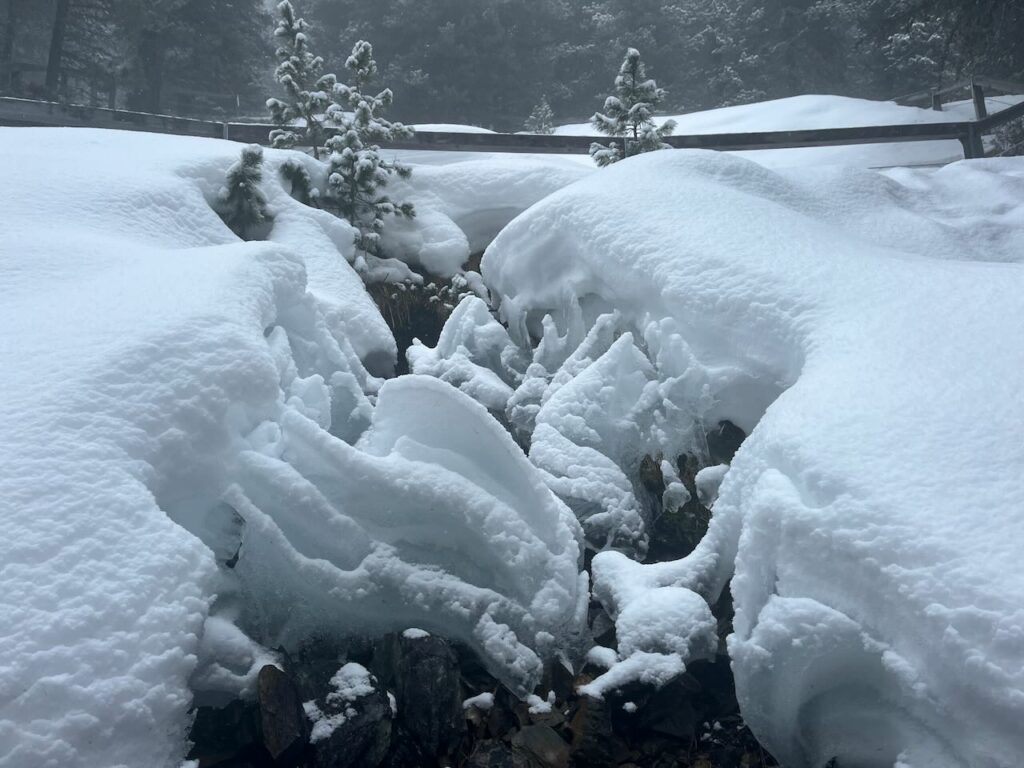 Am Ende eröffnete sich vor uns ein Tal, gelegen auf 1749m Höhe, eingerahmt von allen Seiten von schneebedeckten Gipfeln, die bis zu 3000m Höhe erreichen. Der Himmel knalleblau, so blau, wie er es nur dort in Südtirol sein kann. Durchs schneebedeckte Tal lief natürlich ein plätschernder, glasklarer Bach, der Weg schlängelte sich zur Farne Alm, wo nur ein paar Holzhütten und das Restaurant – die Zingerle Alm – stehen. Einen Platz auf der (fast vollen) Holzterrasse in der Sonne geschnappt, Radler und Knödel bestellt und die Kulisse genießen – herrlich. Und freuen, dass es zurück zum Bulli nur noch bergab geht 😎