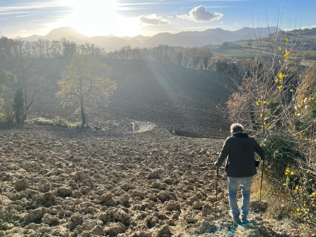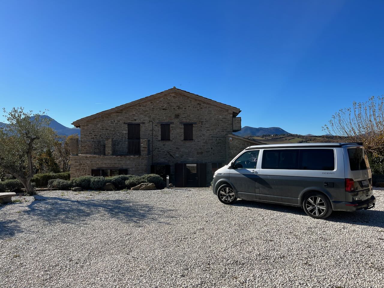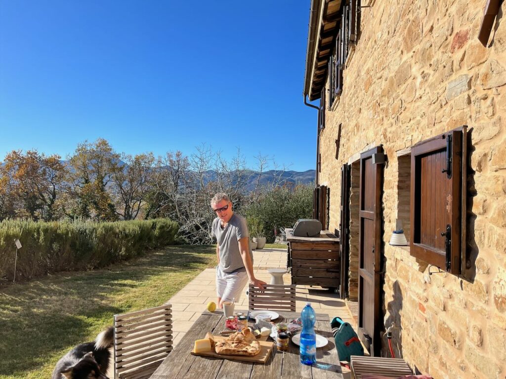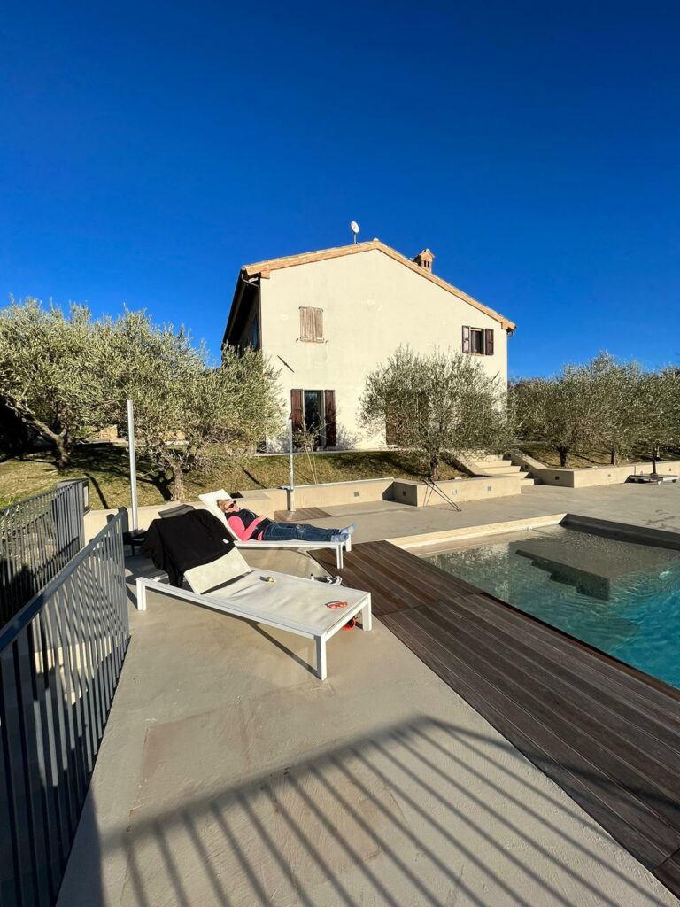 Wir sind jetzt seit 2 Wochen in Apiro in den Marken (in der Nähe von Ancona aber im Landesinneren) und es ist wirklich schöööön hier! Die Landschaft ist mal wieder traumhaft. Hügel, bzw. teilweise auch ganz ordentliche Steigungen, viel Natur, wenige Nachbarn. Sogar noch weniger als man zuerst denkt, denn die meisten Höfe hier in Blickweite sind verlassen oder längst verfallen. Aber dazu schreibe ich später nochmal mehr – wir haben ein neues Spiel: „Verlassen oder Bewohnt?“ – der Unterschied ist oft kaum zu sehen 🫣.
