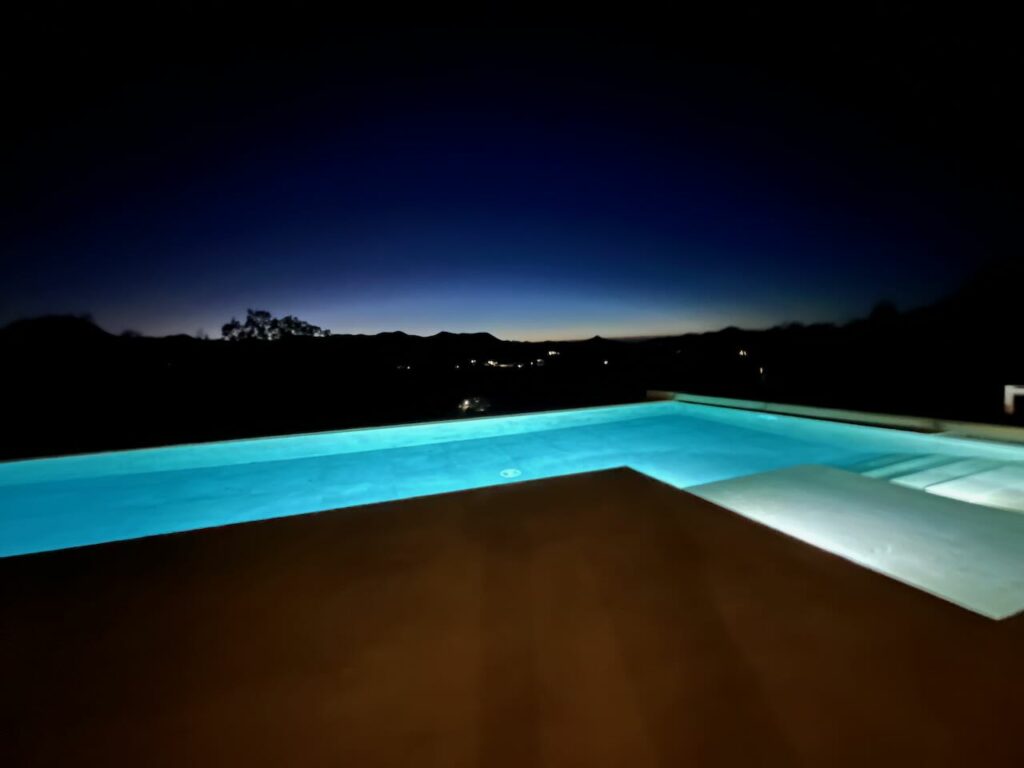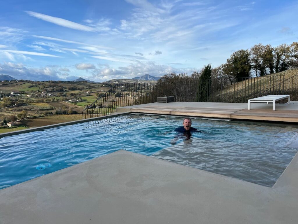 Wir wohnen hier nun im Haus von Olafs Nachbarn und Freunden Elke und Hakki – danke nochmal für die schöne Zeit hier – in der Casa Amici. Der schöne Infinity-Pool ist leider nicht beheizt im Winter, macht sich optisch aber ganz gut und ist vor allem sehr gut als Kneipp-Fußbad nach einem Besuch in der Sauna 😏