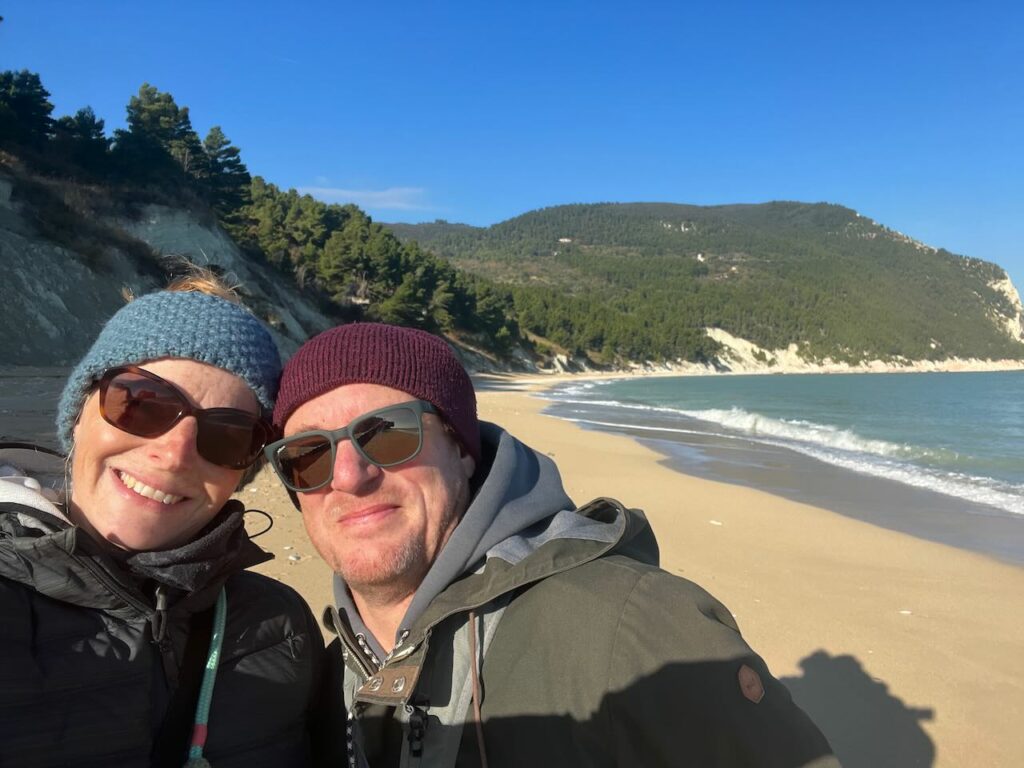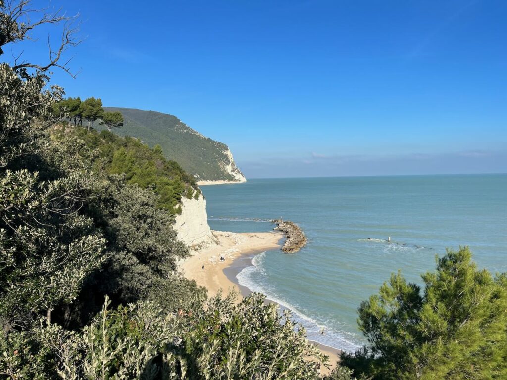 Mit dem Auto kann man einige Regionalparks mit ordentlich Höhenmetern besuchen und bewandern. Bis zur Adria-Küste sind es 30-50 Minuten, je nachdem, ob man an einem hässlichen oder an einem schönen Strand laufen möchte 😉 Wir haben uns letztes Wochenende für die traumhaft schöne Ecke bei Sirolo entschieden mit ihren wunderschönen Steilküsten aus Kalksteinfelsen, die sich bei strahlendem Sonnenschein natürlich auch sehr schön machen.