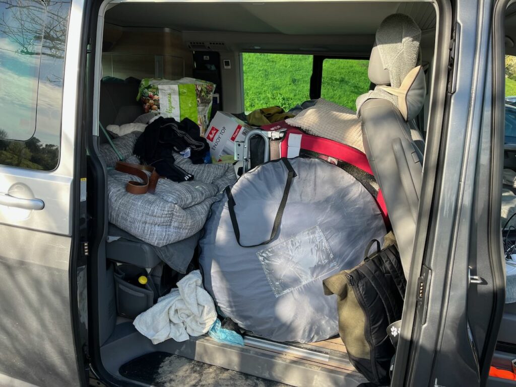 Mitten in der Nacht wachten wir dann alle auf, weil es plötzlich draußen total windig wurde. Olaf und ich retteten fix die Markise, die Stühle (einer war schon weggeweht), ich sammelte alle verstreuten Dinge wieder ein.. der Wind wurde immer stärker und hielt uns auch im Bulli noch lange wach. Da Olaf oben im Dachbett schläft, hatten wir wohl beide Sorge, dass der Sturm zu stark wurde und da oben etwas kaputt machen könnte.