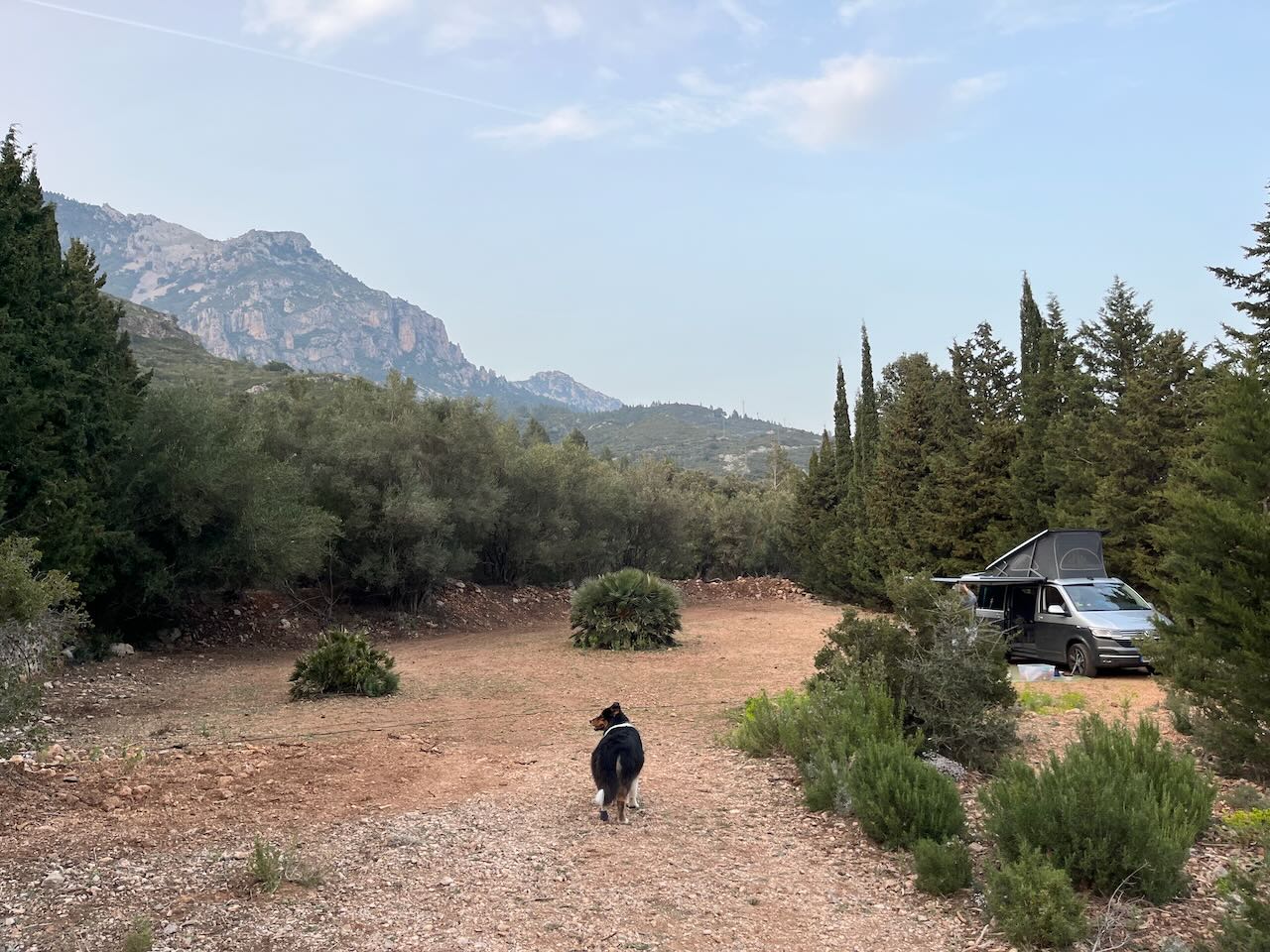 Wir kamen von der hässlichen Küste in die Berge, bogen ab auf einen einfachen Weg und standen dann irgendwann vor einem Schild und einem einfachen Metalltor. Zum Glück parkte dort gerade ein Busfahrer, der eine Schulklasse aus Barcelona für einen Tag hierher gebracht hatte. Er Sprach Deutsch, da er jahrelang die Tour Barcelona – Hamburg gefahren ist .. lustiger Zufall. Über den St. Pauli Aufkleber am Bulli freute er sich auch. Er erklärte uns, wir sollten einfach durch das Tor fahren und schloss es netterweise hinter uns wieder.