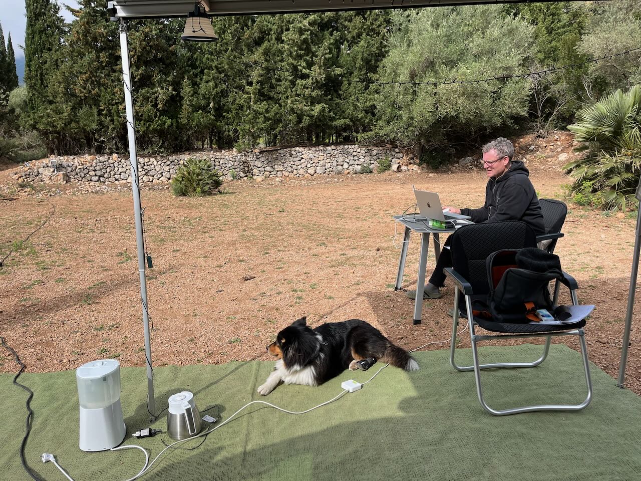 Wir suchten uns den Platz, der tagsüber und auch Abends noch Sonne hatte (wir ahnten nicht, dass wir bald bei 30 Grad hier eingehen würden) und bauten das Camp auf. Gina freute sich über viel freien Auslauf, und dann kam „die Truppe“..