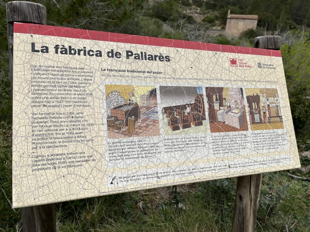 Am nächsten Tag war natürlich erstmal die Arbeit dran. Nachts wars recht kalt und die für den Tag angesagte Sonne ließ uns irgendwie im Stich. Aber egal, wir wollten dringend wandern gehen. Die Franzosen hatten uns eine Route empfohlen, die direkt von hier zu laufen war. Und wow, was für eine tolle Tour war das! Erst vorbei an einer verfallenen Papierfabrik (La fàbrica de Pallarès) und einem verfallenen Kloster (Ermita de Santa Llúcia) aus dem 17. Jahrhundert, wenn ich den Text richtig verstehe – selbst Google Translate hat etwas Probleme damit.