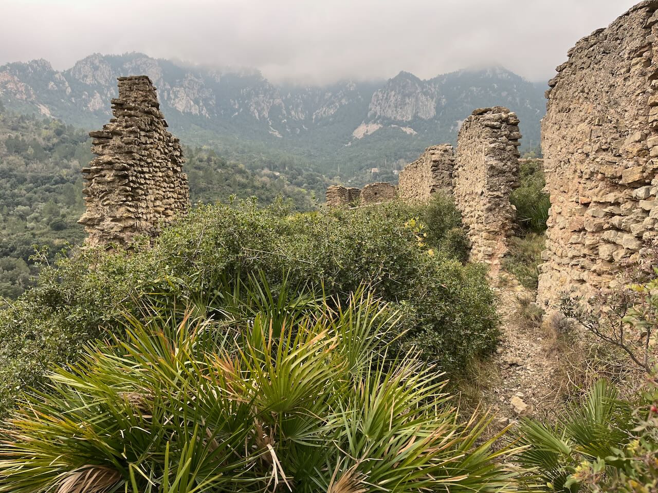 Nach einem schönen Weg durch das Tal und dem ständigen Blick auf die Berge um uns herum gehts bergauf zu einer Ruine aus dem 12. Jahrhundert – El castell islamic de Carles.