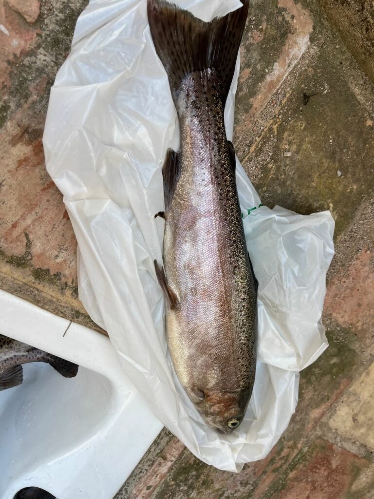 Unsere geplante Radtour mit Wanderung für diesen letzten Tag sagen wir lieber ab, es ist einfach zu heiß. Stattdessen hocken wir uns in den Schatten, trinken ein kühles Bierchen, schauen uns den Rest der Fischfarm an, unterhalten uns mit den Holländern und bezahlen bei Anna die niedlichen 80 EUR für 4 Nächte auf ihrer Farm. Zum Abschied bekommen wir von ihr noch eine Forelle geschenkt – was sehr praktisch ist, denn wir wären sonst kurz darauf mit den Fahrrädern in Richtung Dorf aufgebrochen, um in einem Restaurant hoffentlich etwas zu Essen zu bekommen.