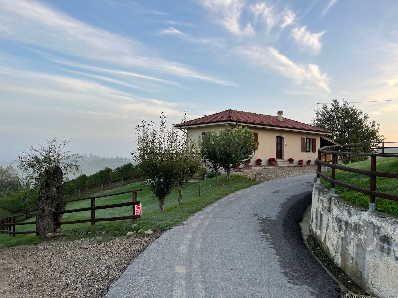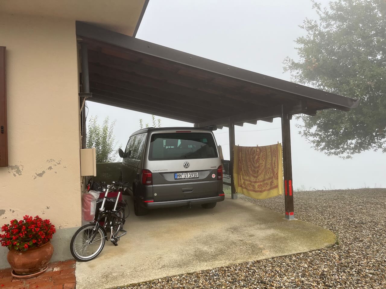 Wir haben uns ein Weingut im Piemont gesucht und zum ersten Mal, seit wir bei der Oma in Speyer abgereist sind, eine feste Unterkunft gebucht. Irgendwie war es dringend mal nötig. Ein bisschen Hüftschmerzen hier, ein bisschen Nacken da, ständig stößt man sich irgendwo und es muss sowieso mal alles, inklusive Bulli, durchgewaschen werden.
