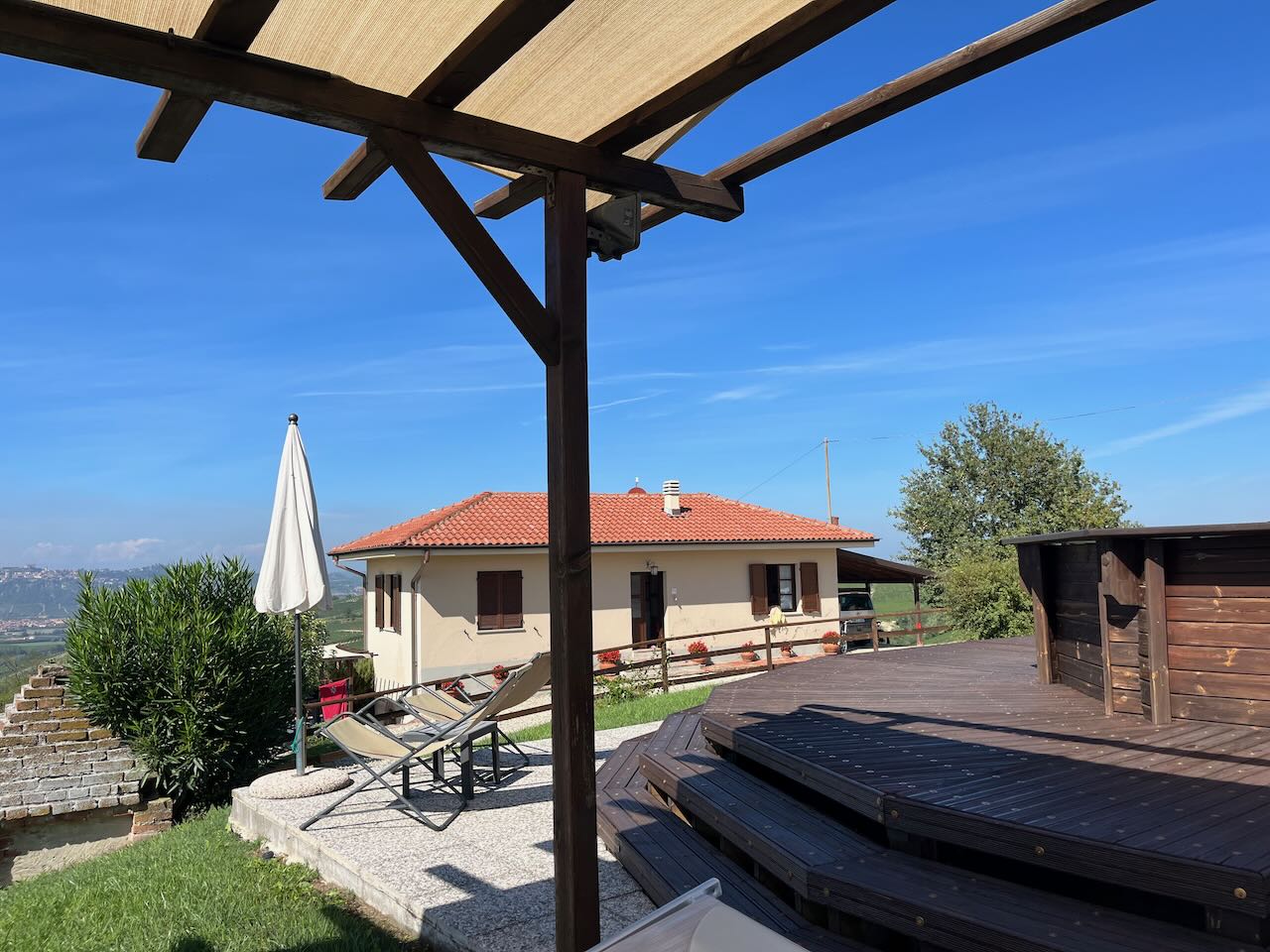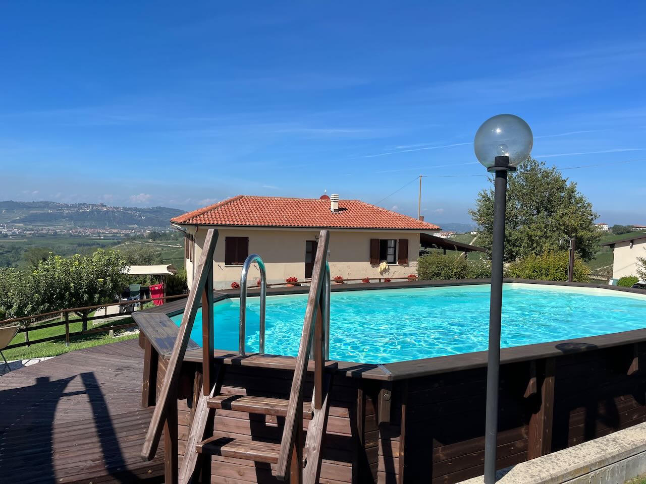 Der erste Treffer mit guten Bewertungen bei Google war das Ada Nada in der Nähe von Alba. Wir hatten spontan ein kleines Ferienhaus gebucht, das abseits vom Weingut, aber anscheinend direkt neben dem Haus der Eigentümer stand. Drum herum gab es viel Platz, einen Garten, ein hohes Carport, einen eigenen Pool. Wir hatten Waschmaschine und Staubsauger zur Verfügung und sogar einen Gartenschlauch. Perfekt für unser Vorhaben 😉