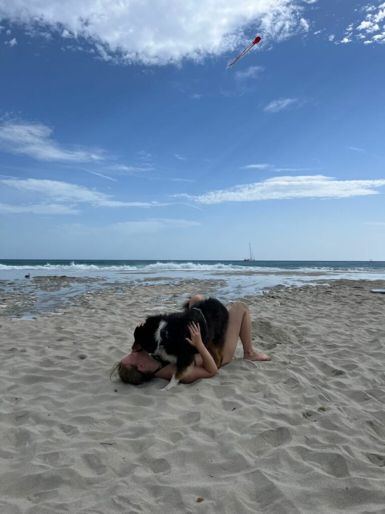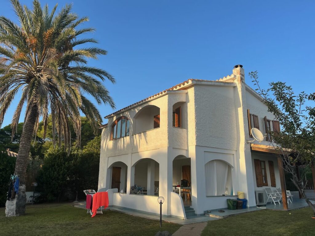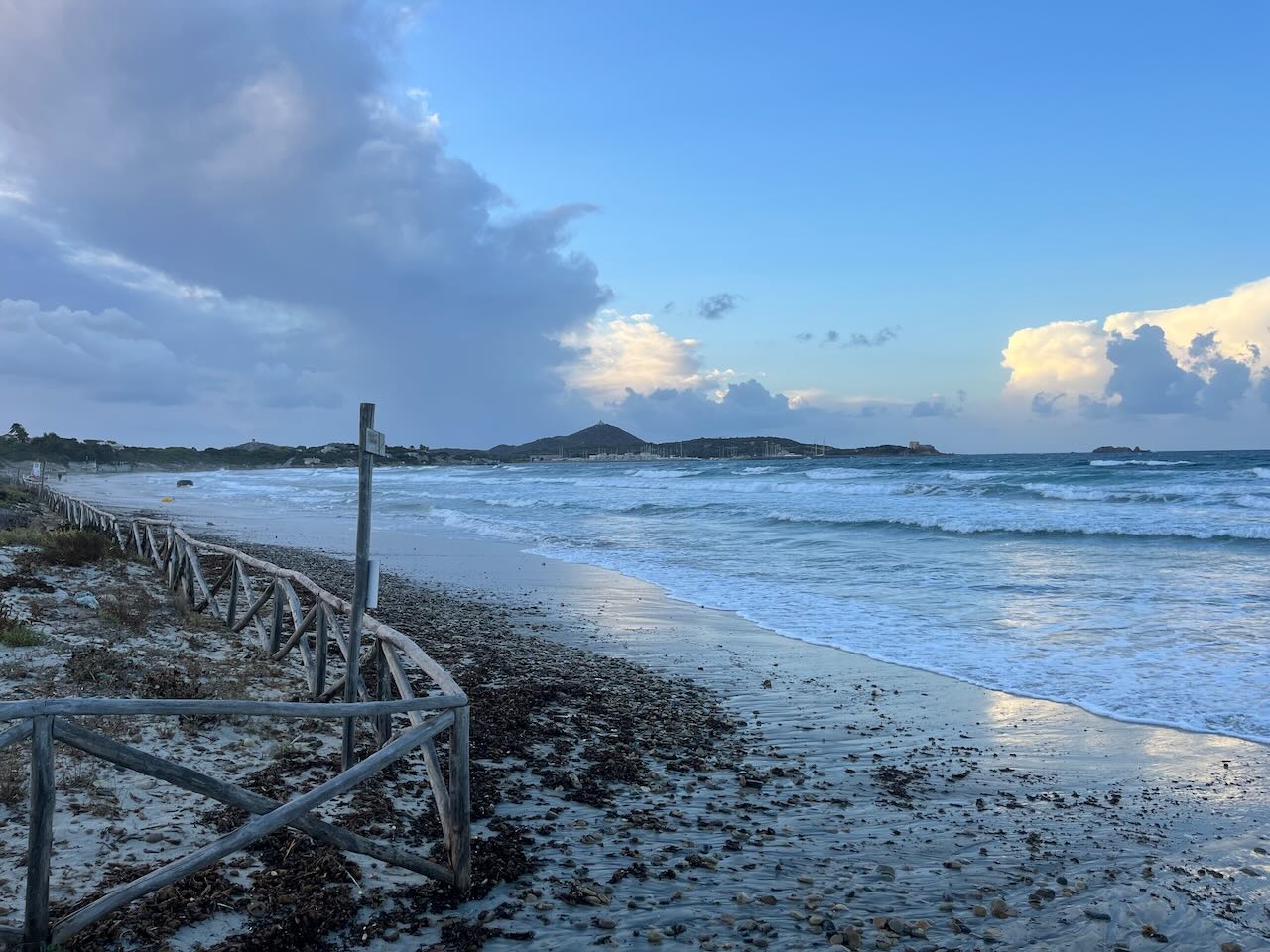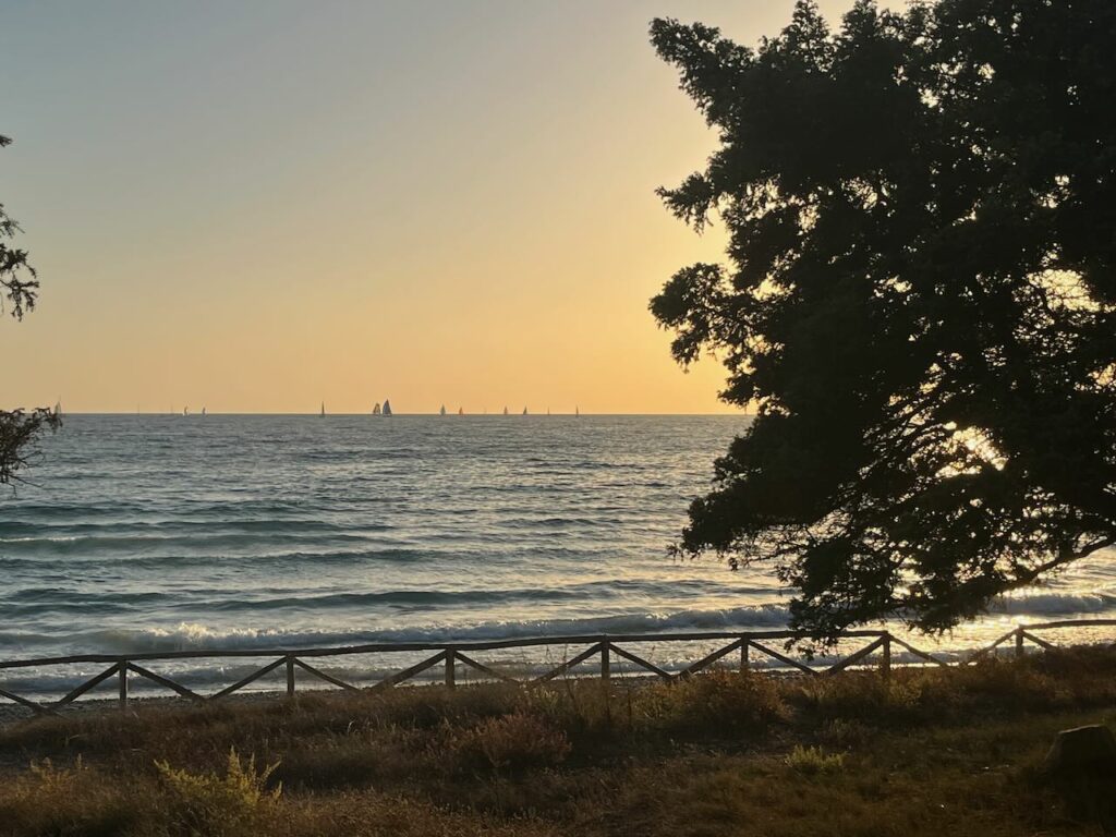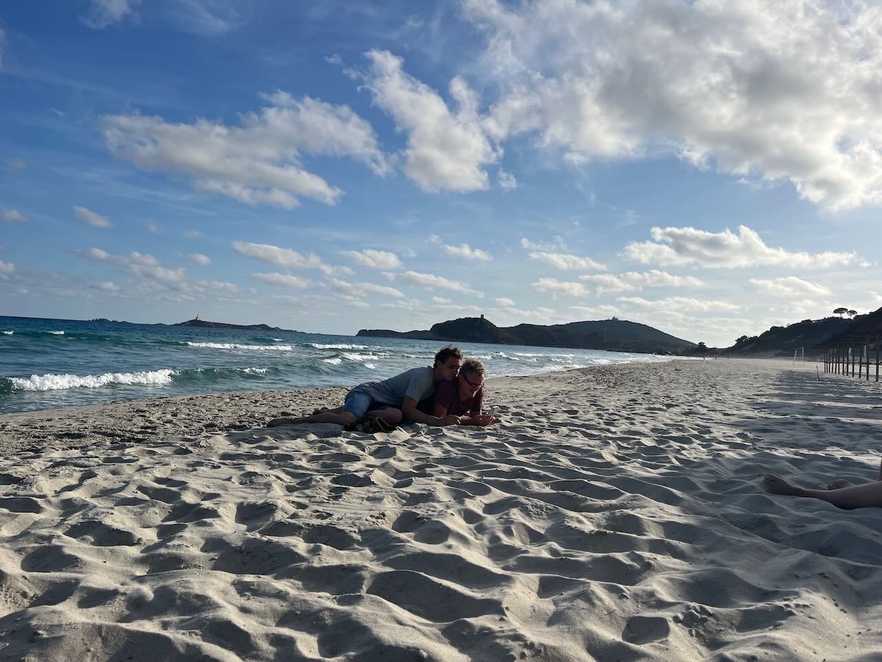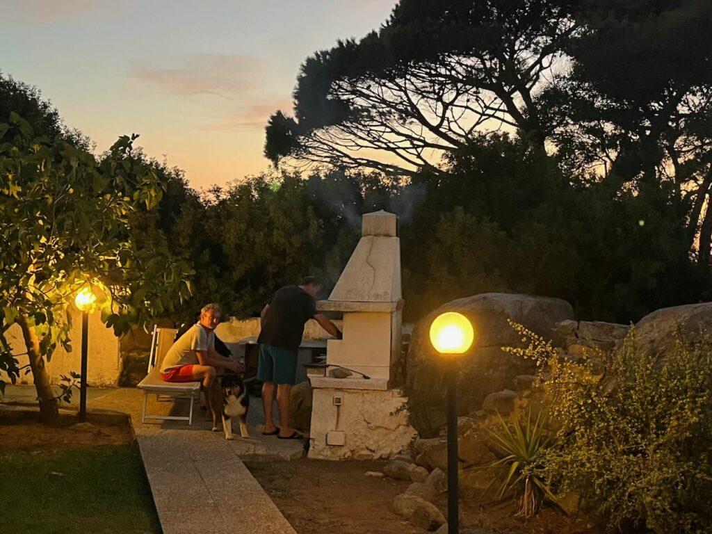 Den restlichen Tag verbrachten wir verteilt mit arbeiten und am Strand rumhängen. Nina und ich fuhren zu einer riesigen Bucht auf der Ost-Seite – Spiaggia di Porto Giunco (Google Maps Link). Mega schön, leider ziemlich voll und auch hier wieder – Wauwi-Verbot. Da wir aber schon Hunde in der Strandbar sahen, ignorierten wir das Schild wie üblich – es war auch wirklich klein und schwer zu lesen 😉