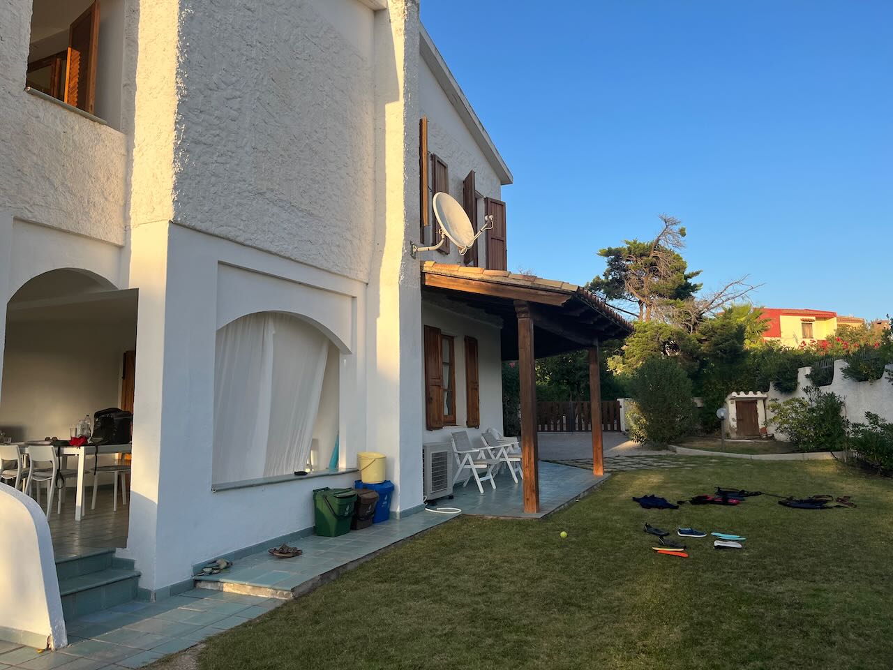 Angefangen bei diesem Traum-Haus – innen eher pfui (aber sauber und ordentlich), außen hui. Die Räume sind typisch italienisch ungemütlich eingerichtet, die Küche super klein und natürlich ohne Geschirrspüler. Keine gute Sache, wenn man mit fünf Erwachsenen dort haust und die Kids nur mit angedrohter Prügel die Abwaschbürste in die Hand nehmen. Generell haben wir das Gefühl, dass wir das Zuhause einfach hierher verlagert haben. Hinterherräumen, Organisieren, Ermahnen, das übliche – wie daheim 😉