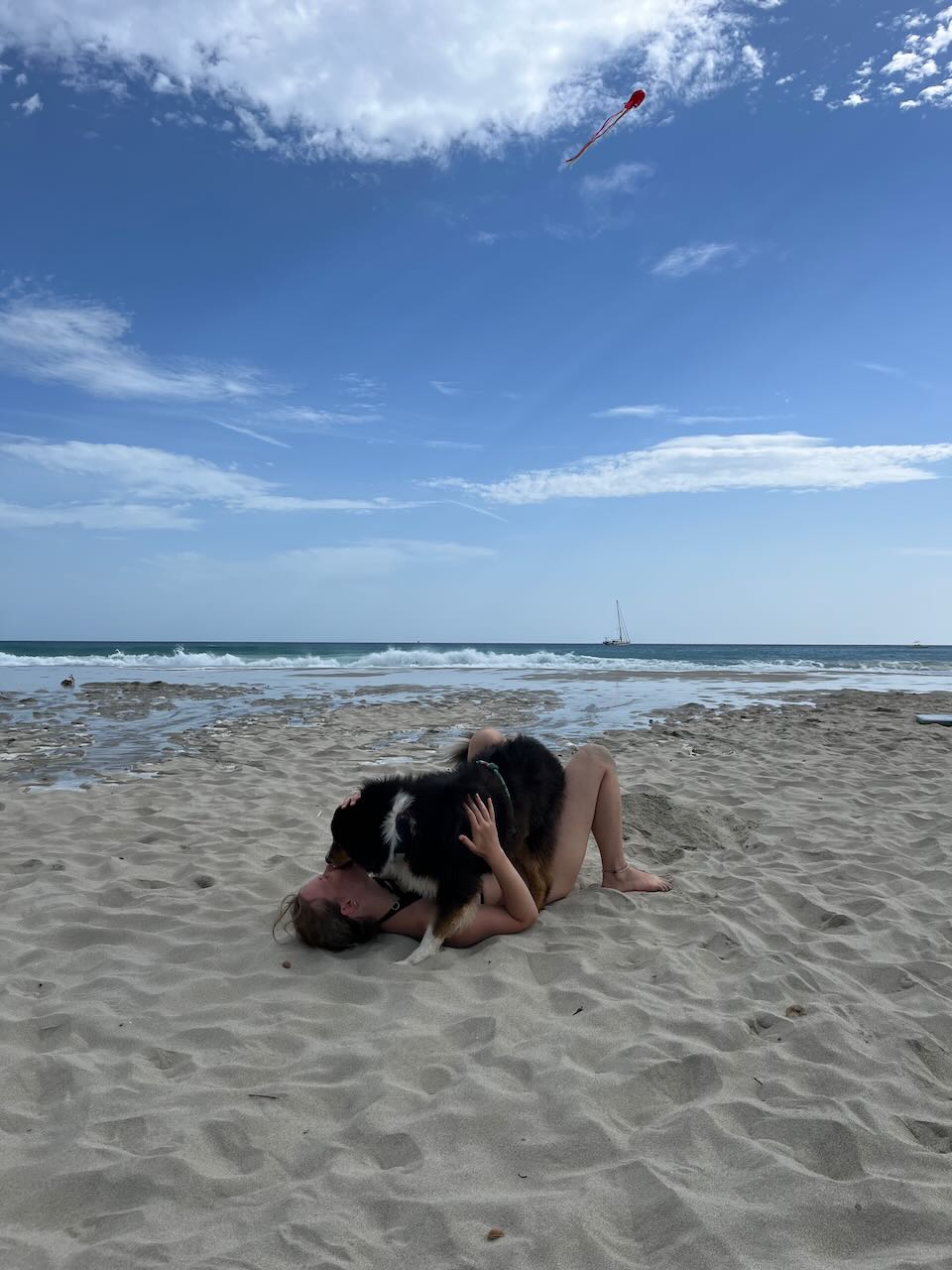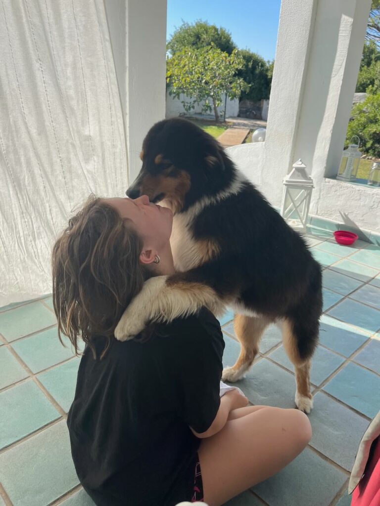 Seit Ankunft von Nina wurde diese dann kontinuierlich jeden Mittag (also bei Nina Aufstehzeit) und jeden Abend komplett von Gina abgeschleckt. Am Samstag kamen dann morgens der Hübi und Abends der Tommi an. Tommi leider mit sehr viel Verspätung, der hatte keinen Spaß mit RyanAir. (O-Ton Olaf: wer fliegt auch mit RyanAir!). Die Beiden wurden von Gina auch überglücklich begrüßt und Fini musste erstmal allen gezeigt werden.