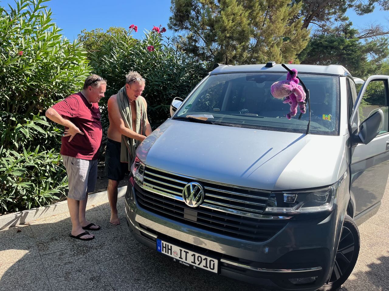 Heute wurde nun der Hübi zum Flughafen gebracht, morgen folgen ihm die Kids zurück ins kalte Hamburg. Olaf, Gina und ich pendeln uns wieder in unser Reisetempo ein, fahren am Montag ganz entspannt hoch bis Olbia, wo um 22 Uhr unsere Fähre nach Livorno fährt, wo wir am nächsten Morgen um 7 Uhr ankommen. Ich fahr nicht gern Fähre und vor allem nicht nachts – aber was soll man machen. Hoffen wir mal, dass die Wellen sich ein bisschen beruhigen bis dahin.