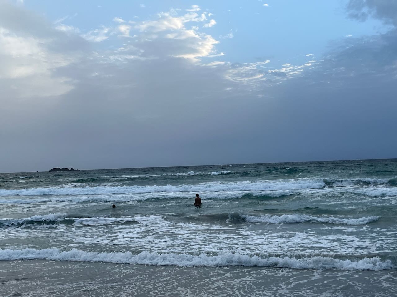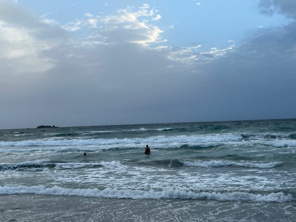 Hier waren die Wellen auch ehrlich gesagt kaum niedriger… die paar Boote, die in der Bucht Schutz suchten, schwankten ganz schön hin und her und die Wellen am Strand boten Wellenreitern und Bodysurfern eine Menge Spaß. Wow! Begeistert stießen nachmittags auch die anderen dazu und alle tobten sich in den Wellen aus.